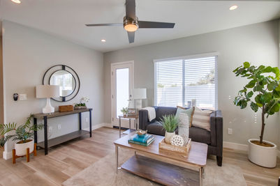 This property originally consisted of a 7,800-square-foot lot with a 750-square-foot, two-bedroom, one-bath home. Upon purchase, we renovated the front house while simultaneously obtaining permits for an ADU—a 1,200-square-foot, two-story home with an attached one-car garage.